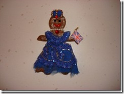"Making your own gingerbread and hanging them on the tree is quite a nice thing to do. You don't have to go to the extent we did. You could do something simple and just have the glitter embroidery glue on the edges [of the gingerbread man]."